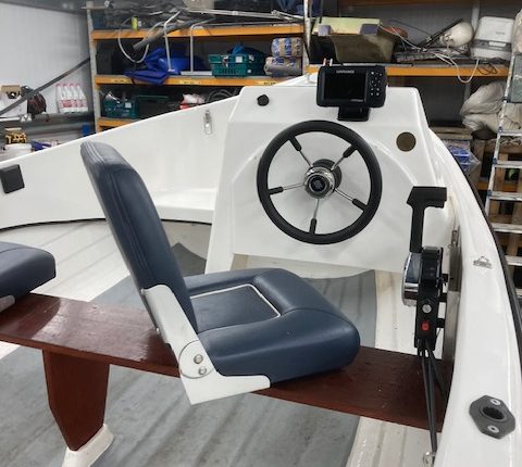 Blue hulled boat £10,300, cuddy £995, (Steering console, cables, wheel, helm, battery £595), cover £250 , 2 x swivel seats £295, SBS 600EL roller trailer £1895, 4 grab rails £160, manual bilge pump £85, aux engine bracket £120, Tohatsu 9.9hp EFI 4 stroke outboard engine on remotes £2724.