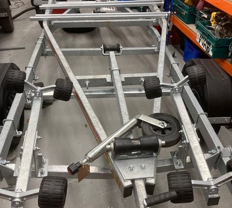 New Roller Trailer 600EL £1895 inc spare wheel, adjustable height winch post, jockey wheeling lighting board.Made to fit Arran 16.
